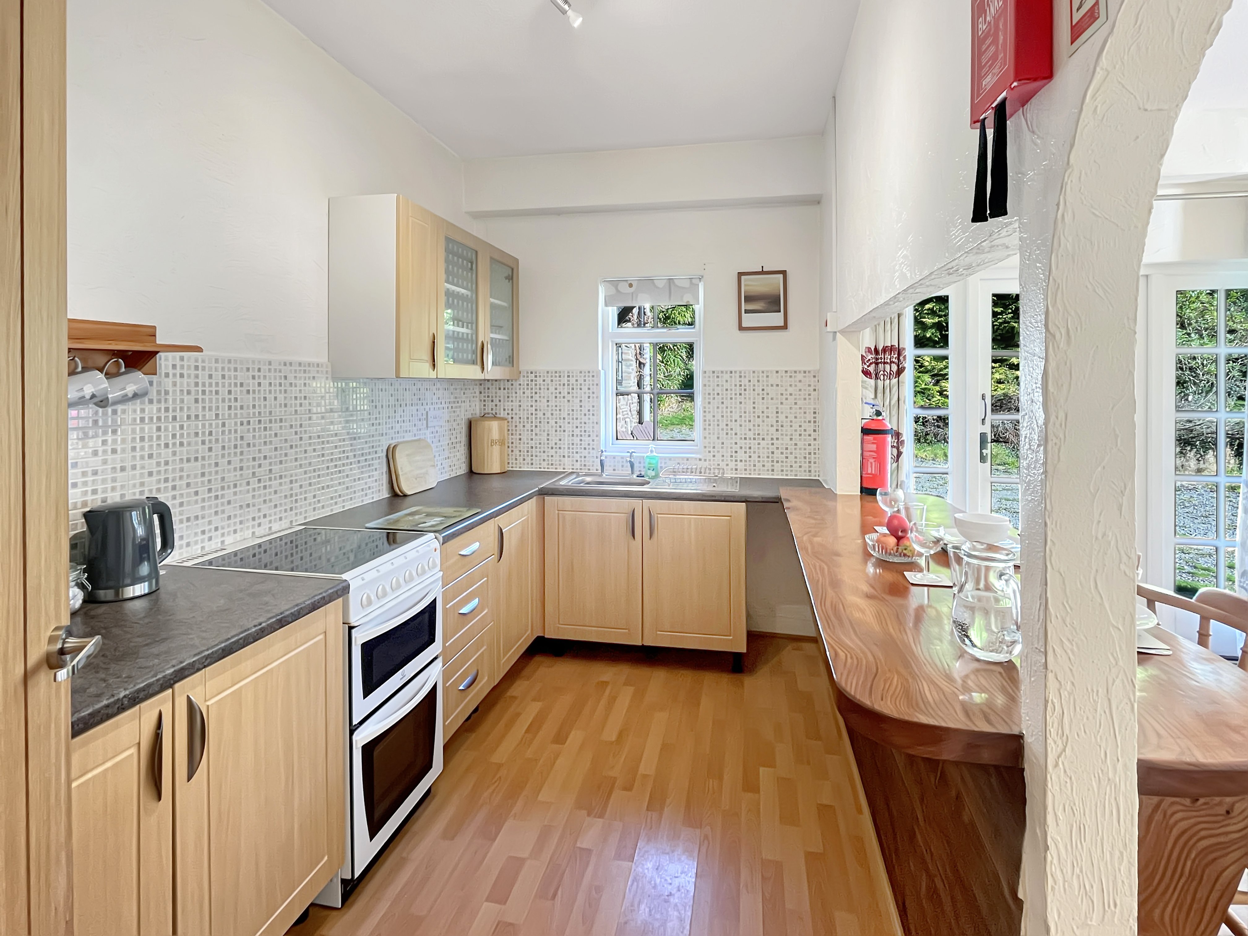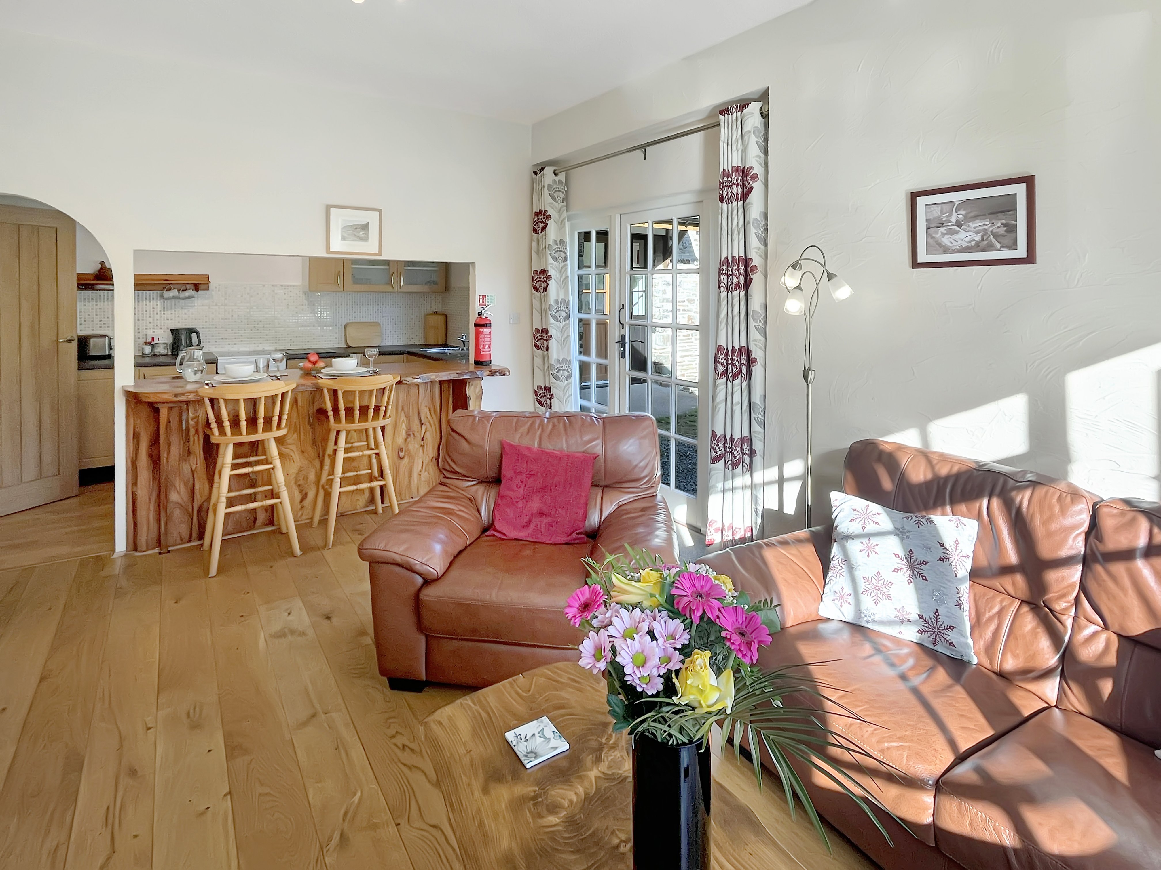 The Roundhouse is a ground-floor property with a private entrance. It is one of six cottages on our site, attached to the Grain Store and Threshing Barn. The Roundhouse is all on one level, with no internal steps. The private entrance leads directly into the open-plan living, dining, and kitchen area. The living room is spacious, featuring a smart TV and comfortable leather sofa and chair. A solid beech breakfast bar separates the living and kitchen areas, allowing for easy conversation while cooking or dining together. The kitchen is equipped with a fridge/freezer, microwave, and electric cooker (grill, main oven, and hob). The cupboards are well-stocked with crockery, cutlery, glasses, and pans. The spacious bedroom with a double bed offers views of the gardens. There is a shower room with a shower, toilet, and sink. The cottage includes a small utility cupboard with a washer/dryer for the exclusive use of Roundhouse guests. In addition to the private use of the Roundhouse, guests have shared access to several on-site facilities: Outdoor heated swimming pool: Available for guests from May half-term until the end of September. Games room: Enjoy a game of table football or table tennis. Gardens: Shared access to 2 acres of gardens surrounding the cottages, with picnic benches, garden chairs, and BBQs available for dining or relaxation. Car parking: One parking space is provided in our shared parking area.