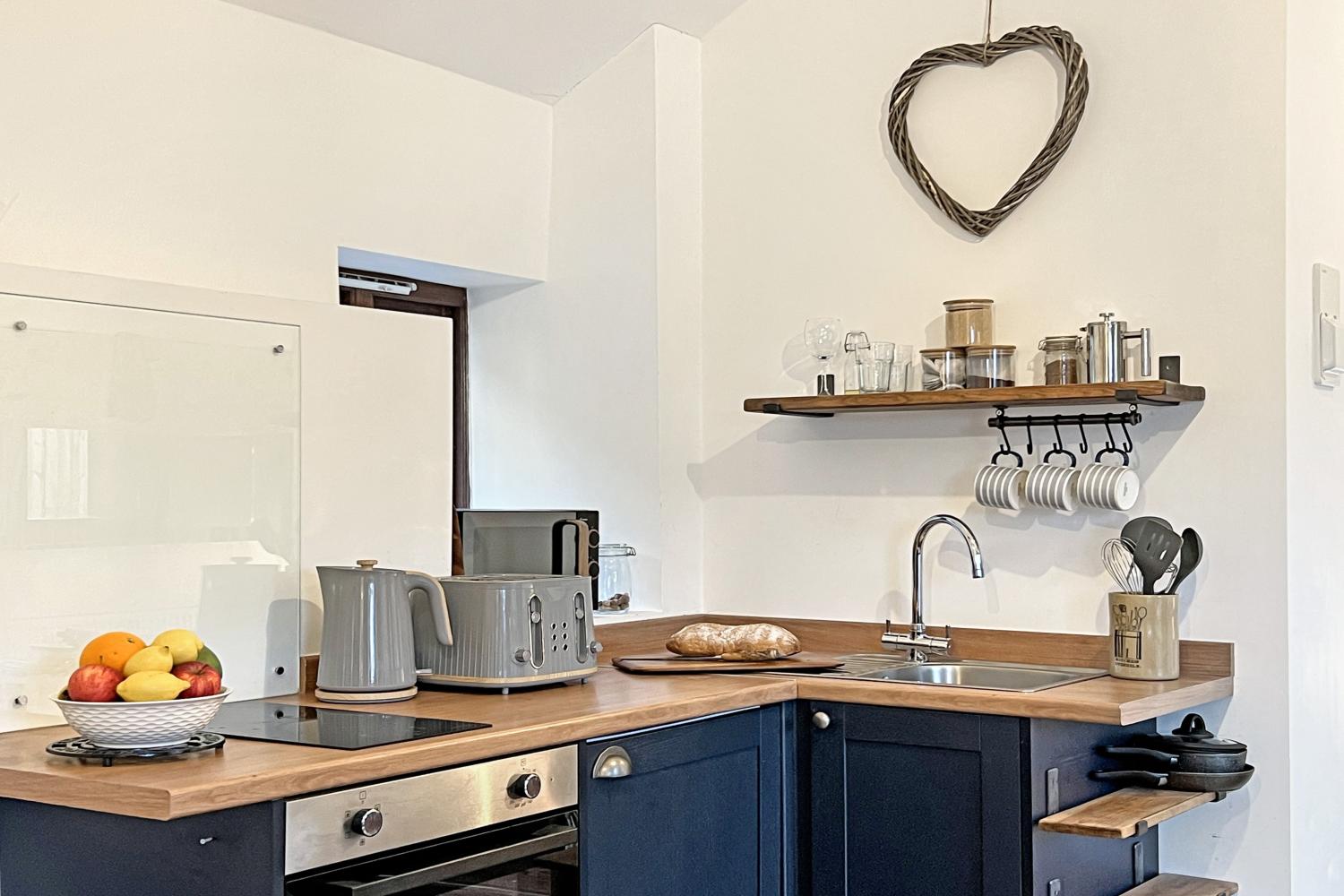 The kitchen area is compact but well-equipped to enable guests to self-cater. Facilities include electric cooker with hob, sink, toaster, electric kettle, microwave, and under-counter fridge (with freezer compartment). The shower room is has a walk-in shower, toilet and hand basin. There is an external laundry room which can be used on request (washing machine and tumble dryer). Heating and electricity is included in the price of the accommodation. Davey's is fitted with central heating plus the wood-burner in the living area. Logs and kindling are provided. Wifi is available free of charge. Towels and bed linen, duvets and blankets provided for your convenience. Please bring your own beach towels if you wish to take towels with you away from the property. Cleaning materials such as washing up liquid will be present in the property, and one to two toilet rolls will be provided. Tea, coffee, milk, and homemade cake on arrival will be provided for all booking. For stays of more than three nights, guests will also receive bread and local eggs.