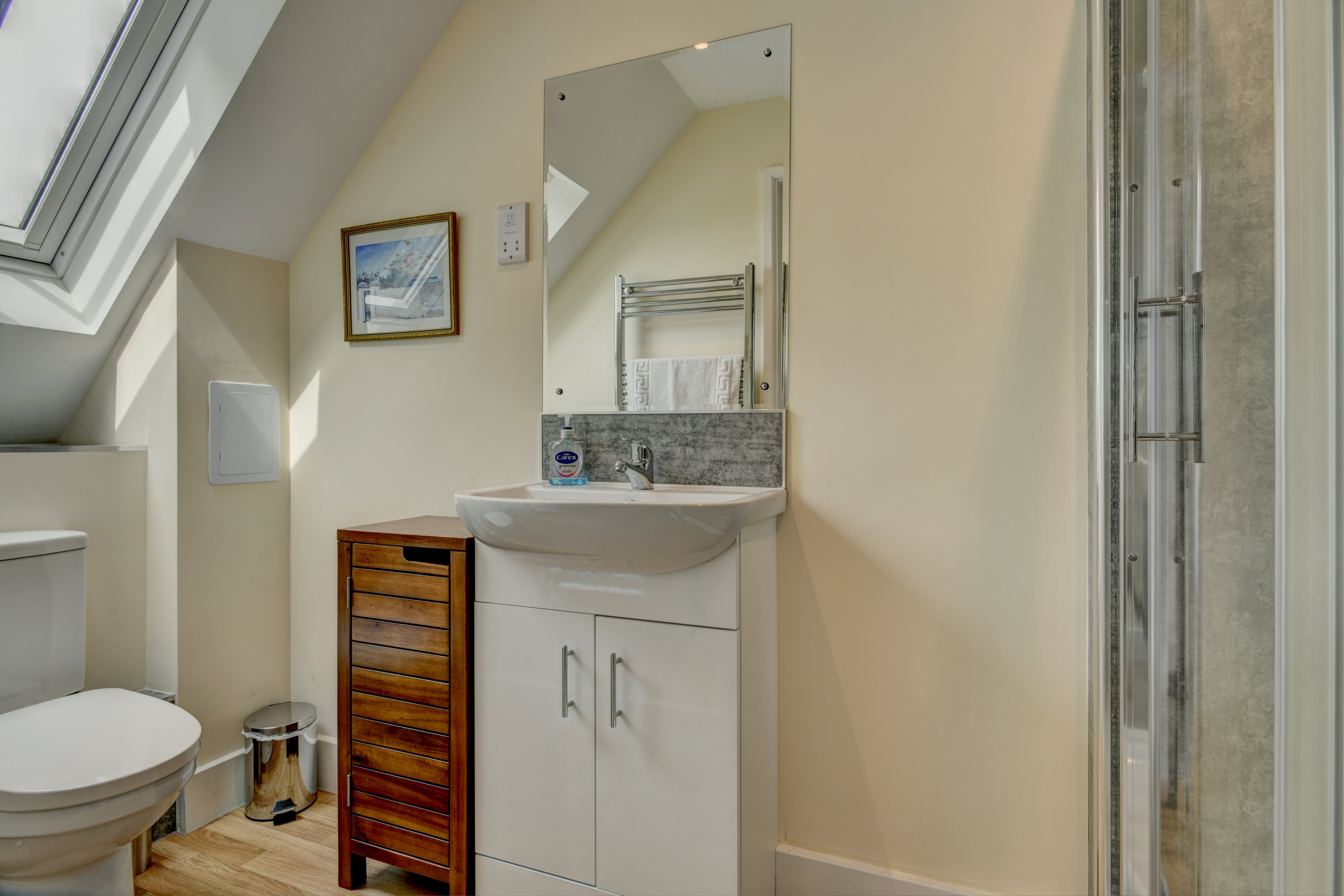This newly converted cottage, originally a stable, has a large open-plan living area featuring a wood-burning stove. The kitchen is well equipped, and includes a free-standing fridge-freezer, dishwasher, washing machine and dryer, microwave, and electric double oven plus hob. Other equipment includes toaster, kettle, cafetiere, a variety of cookware, kitchen utensils, cutlery, crockery and glasses. There is a dining area with seating for 6 guests, as well as and a comfortable sitting area with TV. The room is very bright as it faces south and has a lot of windows to make the most of the lovely views. There is one downstairs bedroom, a king-sized double with en-suite shower room. Upstairs, are the other two bedrooms, one is a large twin room with en-suite shower room and this bedroom includes a cot. The third bedroom is a further king-sized double bedroom, also with en-suite shower room. Note, no bath in this property. There is a stair gate provided in the cottage. Electricity and heating costs are included in the price of your accommodation. The central heating is provided by Biomass Boiler and can be adjusted to suit your preferences and the seasons. A basket of logs and kindling will be provided for the wood-burner in the cooler months. Bed linen, duvets, blankets and towels are provided for your convenience, but please bring your own beach towels if you wish to take towels with you on day trips. The bedding provided is non-feather. There may be non-perishable items like a salt, pepper and a few herbs or spices available. Cleaning materials such as washing up liquid, and surface cleaner will be present in the property. One or two toilet rolls will be provided per toilet. Dogs are welcome but not permitted to get onto the furniture or to go upstairs at all. Dogs are charged at £15 per dog per stay, maximum of 3 dogs per booking.