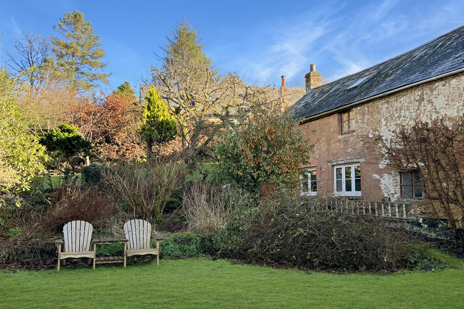 The deceptively large garden is a particular feature of the property. A door from the conservatory leads out onto a patio area, where there is an outdoor dining table and chairs, which benefits from sun throughout the day and evening, and a small sunny seating area in front of the kitchen, perfect for a pre-dinner glass of fizz. Beyond the patio is a flat lawned area, with Adirondack chairs offering countryside views and an excellent bird spotting vantage point. Paths lead from here to a stream-fed pond and orchard, both with bench seating. There is also a large vegetable garden. The garden is enclosed, though particularly adventurous dogs would be able to jump over the wall in front of the conservatory, or crawl through the thick beech hedge. The garden can also be accessed from the entrance courtyard. The cobbled courtyard is shared with the owners' other property next door which is also let for holidays, The Old Malt House (sleeps 4), which has its own separate enclosed garden.