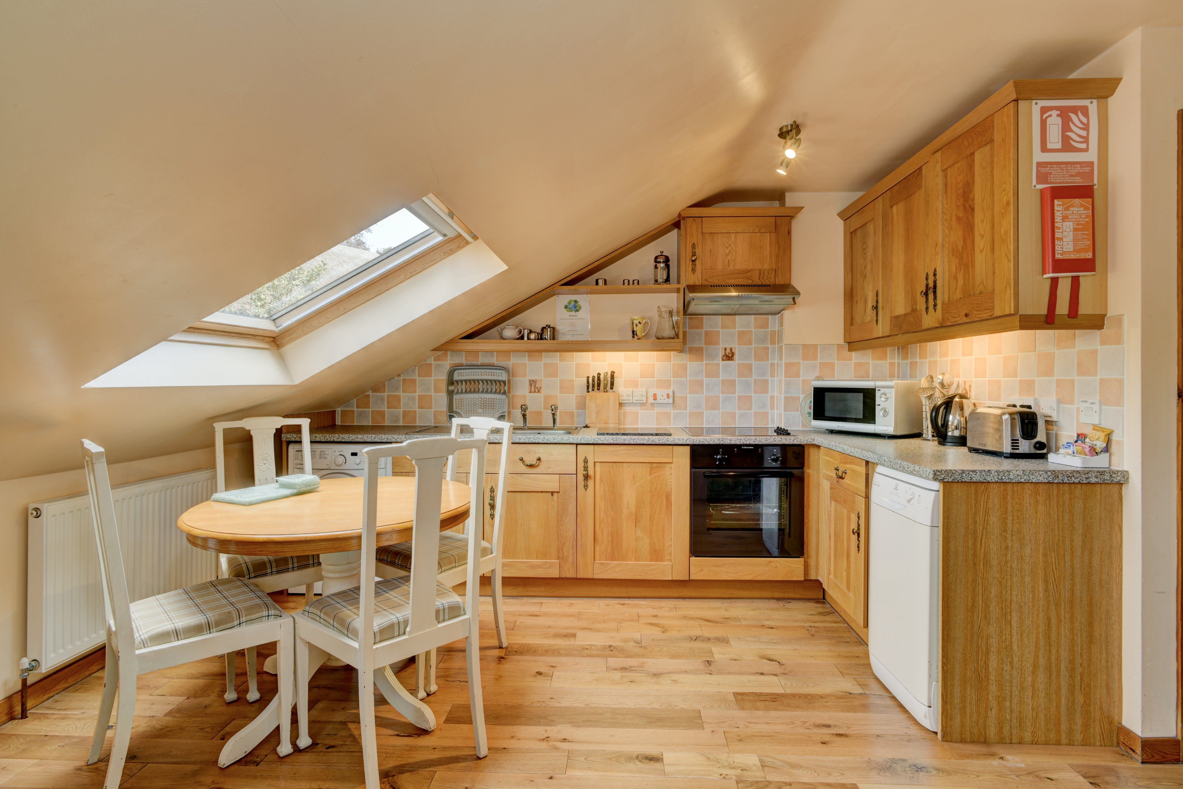 Entering from the landing at the top of the staircase you would go straight into the open-plan lounge/diner. The kitchen is on the far side to your left. The double bedroom is straight ahead and a small corridor to the right leads to the shower room and the single bedroom. Bed linen is provided, towels can be hired for £3 per person. Central heating and electricity is included. There is a washing line just outside of Bilbrook Cottage. The owner also has some additional airers that can be borrowed on request.