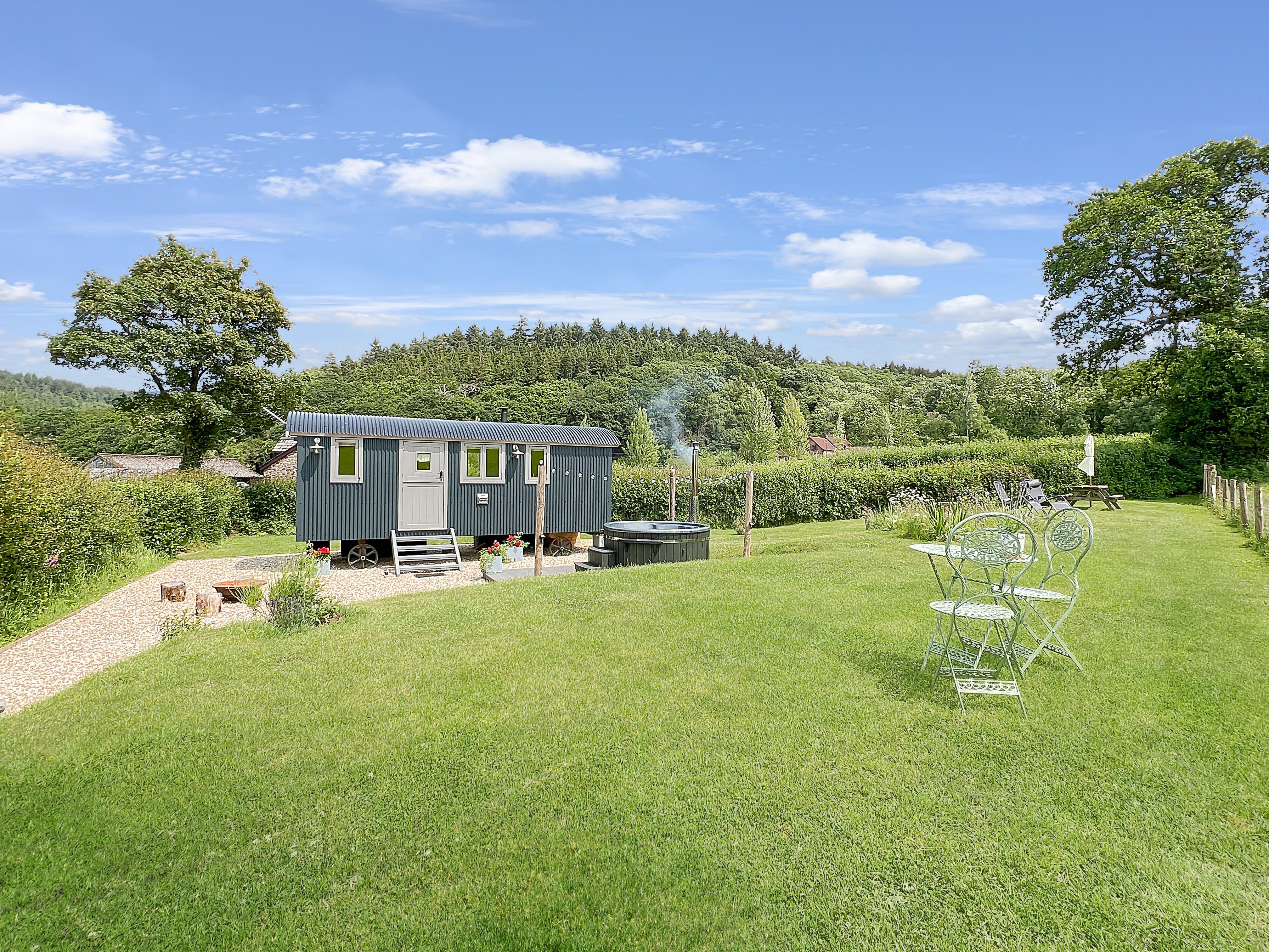 Cartier's Retreat is an ideal base for unwinding and reconnecting with nature, with medieval Dunster nearby, and many of Exmoor National Park's attractions within easy reach. For wildlife lovers, it's a great spot for seeing local deer, foxes and buzzards. Sleeps up to 2 guests in a king-size bed Large, private garden and patio area directly outside the hut Private wood-fired hot tub Kitchen area and inside seating En-suite shower room with heated towel rail and flushing loo Underfloor heating throughout to keep you cosy in the cooler months Wood-burner for extra cosiness Wifi, heating and electricity included Logs provided for the wood-burner and the hot tub Towels and bed linen provided Sorry, no pets Strictly no smoking Arrive from 3 pm Depart by 10 am Approached via a private lane which leads directly to a private parking area, just a few steps from the hut, Cartier's Retreats sits within a private garden with wood-fired hot tub sitting on its own deck - a perfect spot to unwind under the stars. There are four steps up to the door, once inside you’ll find a king-size bed and a well equipped kitchen with oak worktops and a Belfast sink. Electric oven, fridge & microwave. The en-suite includes electric shower, heated towel rail and flushing toilet. A comfortable sofa, TV and wood-burner complete this cosy get-away. While the setting is blissfully quiet, it is located on a working farm so you may occasionally hear the sound of a tractor.