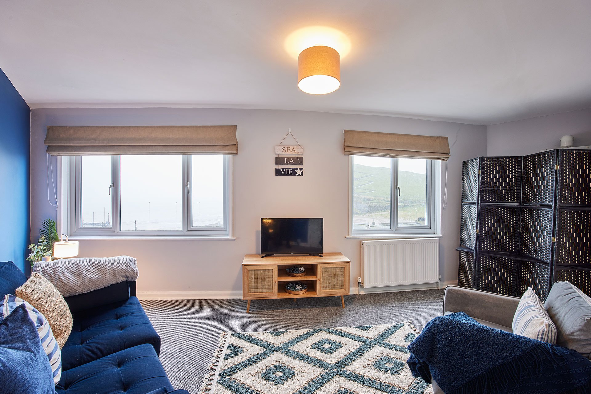 Apartment 5, located in The Albemarle building in Ilfracombe, offers a seaside escape, whether you're planning a staycation with friends, or enjoying a family holiday. This contemporary apartment boasts two bedrooms, living room, kitchen-diner, and family bathroom. Sleeps up to 4 guests One double bed (4'6) One small double bed (4') Living room with sea views Kitchen-diner includes dining bar with sea views Family bathroom Heating, electricity and hi-speed wifi included Bed linen and towels provided Dogs welcome (2 max) Great location in Ilfracombe Easy access to the beach, harbour and all the towns amenities Arrive from 4 pm Depart by 10 am Entrance to the property is via a shared hallway, and Apartment 5 is on the first floor up a flight of internal stairs. The entrance door opens directly into an internal hallway which runs the length of the apartment to the living area, which looks out to the beach. Ilfracombe is a picturesque Victorian seaside town in Devon, boasting two beautiful beaches and a delightful harbour. Apartment 5 in located in the heart of Ilfracombe and is ideal for exploring this charming destination, the stunning North Devon coastline as well as Exmoor National Park.