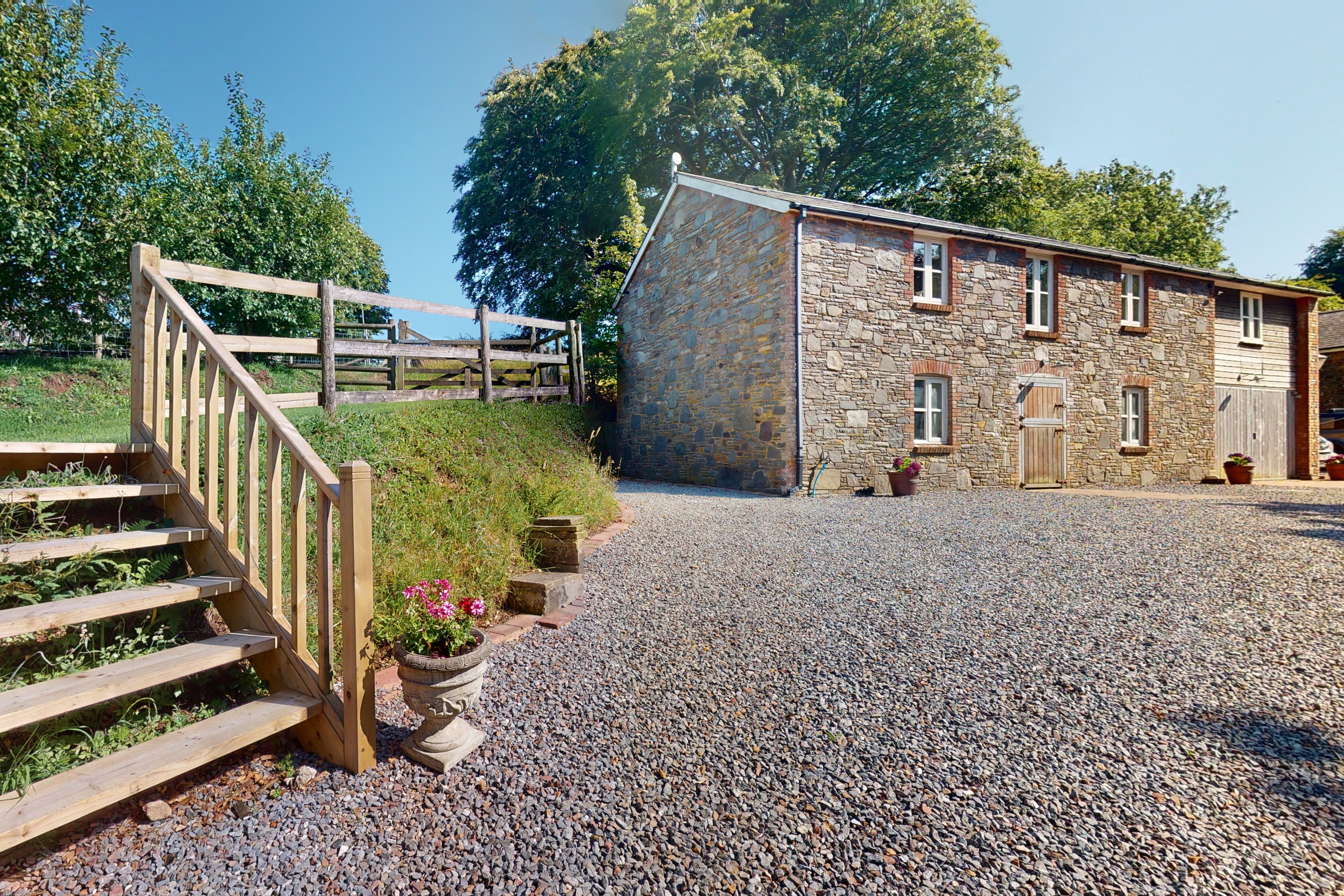 The Hayloft in Oare near the Somerset / Devon border provides excellent quality accommodation, this charming conversion sits above the stables and is accessed via six external wooden steps and gravel path. The front entrance leads into a spacious utility room with ample space for walking boots and coats. A stylish and comfortable sitting room enjoys wonderful views over Exmoor and has a log burning stove for cosy evenings at any time of year. Fully fitted with cream country style kitchen units complemented by granite work surfaces and limestone flooring, the spacious dining kitchen has everything you could possibly need. Two beautiful double bedrooms each with their own luxurious en-suite bathrooms complete this wonderful holiday home. Spacious and modern property sleeping up to 4 guests in two double bedrooms One King-size bed and one double bed, both with en-suite bathrooms Situated in the heart of Lorna Doone Country, an idyllic location for romantic getaways Fabulous woodland, moorland and coastal walking directly from the door Wood-burning stove in the living room for cosy evenings in Garden with views over the surrounding countryside Dogs welcome (2 max) for £15 supplement per dog Wifi, heating and electricity included Bed linen and towels provided Arrive from 3 pm Depart by 10 am A lawned garden with far reaching countryside views provides an idyllic spot for relaxing in the sun or enjoying al fresco meals in perfect seclusion. If you can tear yourself away there are miles of country walks to explore, stunning coastal scenery and friendly village pubs to sample. Please note: The Hayloft is situated in a valley on Exmoor, therefore mobile phone signal cannot be obtained. The owners live next door and you can use their phone on request. Dogs are welcome by prior arrangement (maximum of 2). A supplementary fee of £15 will be added to your invoice per dog. Please do not allow your dogs on the furniture or in the bedrooms, and do not leave them alone in the property at any time. Please note that this is a no smoking property. Walking The Hayloft is situated in the middle of some of England's most beautiful countryside. Ancient woodlands, heather-covered moors, babbling brooks and wonderful sea views are all accessible from the door. There are seven separate circular walks directly from The Hayloft ranging from four to nine miles long, each with their own special qualities. That's an amazing walk every day for seven days. Changeover days The Hayloft is available for week breaks; Friday changeover. Short breaks are available at some times of year, please check the calendar for availability. The property will be ready from 3 pm on the day of your arrival. Please depart by 10 am on the last day of your stay. Please leave the property clean and tidy so that we can guarantee it will be ready in time for our next guests.