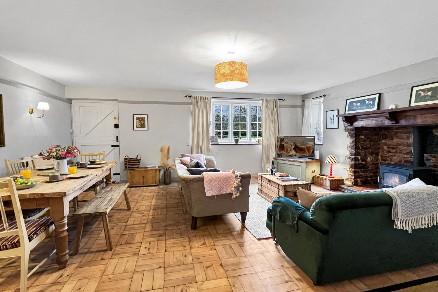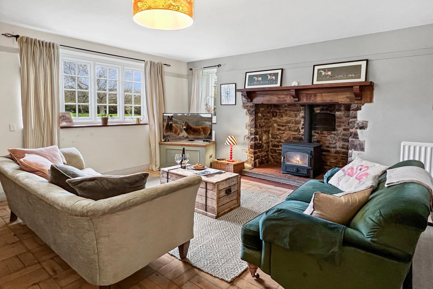 Bossington Green Cottage is a charming semi-detached period home set in the peaceful National Trust village of Bossington, on the edge of Porlock, within Exmoor National Park and just a short stroll from the beach. Blending traditional character with modern comforts, it’s a welcoming retreat with soft cotton bedding, a wood-burning stove, and stunning views in every direction. The large garden offers the perfect spot for summer dining or simply relaxing after a day exploring the coast and moor. Sleeps up to 6 guests Three bedrooms – 1 king, 1 double, 1 twin Bathroom 1 has a bath with shower over, toilet and hand basin Bathroom 2 has an original cast iron claw foot roll top bath and hand basin There is a ground floor outside toilet, opposite the kitchen Spacious sitting/dining room with wood burner Well-equipped kitchen with Rangemaster cooker Large garden with outdoor seating and gas BBQ Wi-Fi, heating and electricity included Bed linen and towels provided Up to 3 well-behaved dogs welcome (£6 per dog, per night) Approx 1 mile from the shops, restaurants and pubs of Porlock Arrive from 3 pm Depart by 10 am The ground floor includes a large sitting and dining room with comfortable sofas, a wood burner set in an impressive inglenook fireplace, and views across the village green. The kitchen is bright and fully equipped, with a breakfast table and a walk-in pantry for extra storage. Upstairs, there are three cosy bedrooms, each with lovely views over Exmoor or towards the coast, plus a family bathroom with a bath and shower over, and second bathroom with claw-foot roll-top bath. Outside, the spacious garden enjoys open views and plenty of room for alfresco dining and games - the perfect setting for making the most of the peaceful Exmoor surroundings. Please be advised that the property is located in a very quiet, rural position - please respect the area and the neighbours and keep noise to a minimum after 10pm.