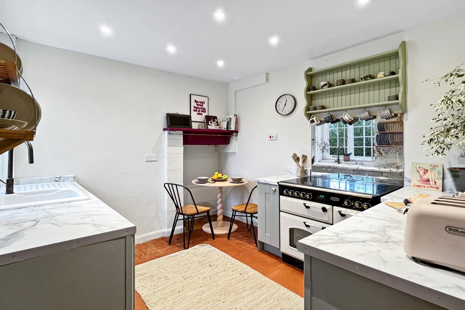 The kitchen/breakfast room is well-equipped kitchen with a Rangemaster cooker, kettle, toaster and microwave as well as ample pots and pans and a good selection of cooking equipment. There is a large walk in pantry where you'll find the fridge and freezer, plus more food storage and preparation space. There is also a small 2 person table in the kitchen so the chef can be kept company while cooking! In the sitting/dining room there is a wood burner in an impressive inglenook fireplace, two comfortable sofas and a flat screen TV. The large dining table seat 6 with ease. WiFi is available throughout. Electricity and heating costs are included in the price of your accommodation. The property is heated with oil-fired central heating. There will be enough kindling and logs provided to get you started, more logs can be purchased locally with ease. Bed linen, duvets and one towel per person is provided for your convenience. Please bring your own beach towels if you wish to take towels with you on day trips or use them outside. There may be non-perishable items like a salt, pepper and oil. Cleaning materials such as washing up liquid will be present in the property. One or two toilet rolls will be provided per toilet and hand wash.