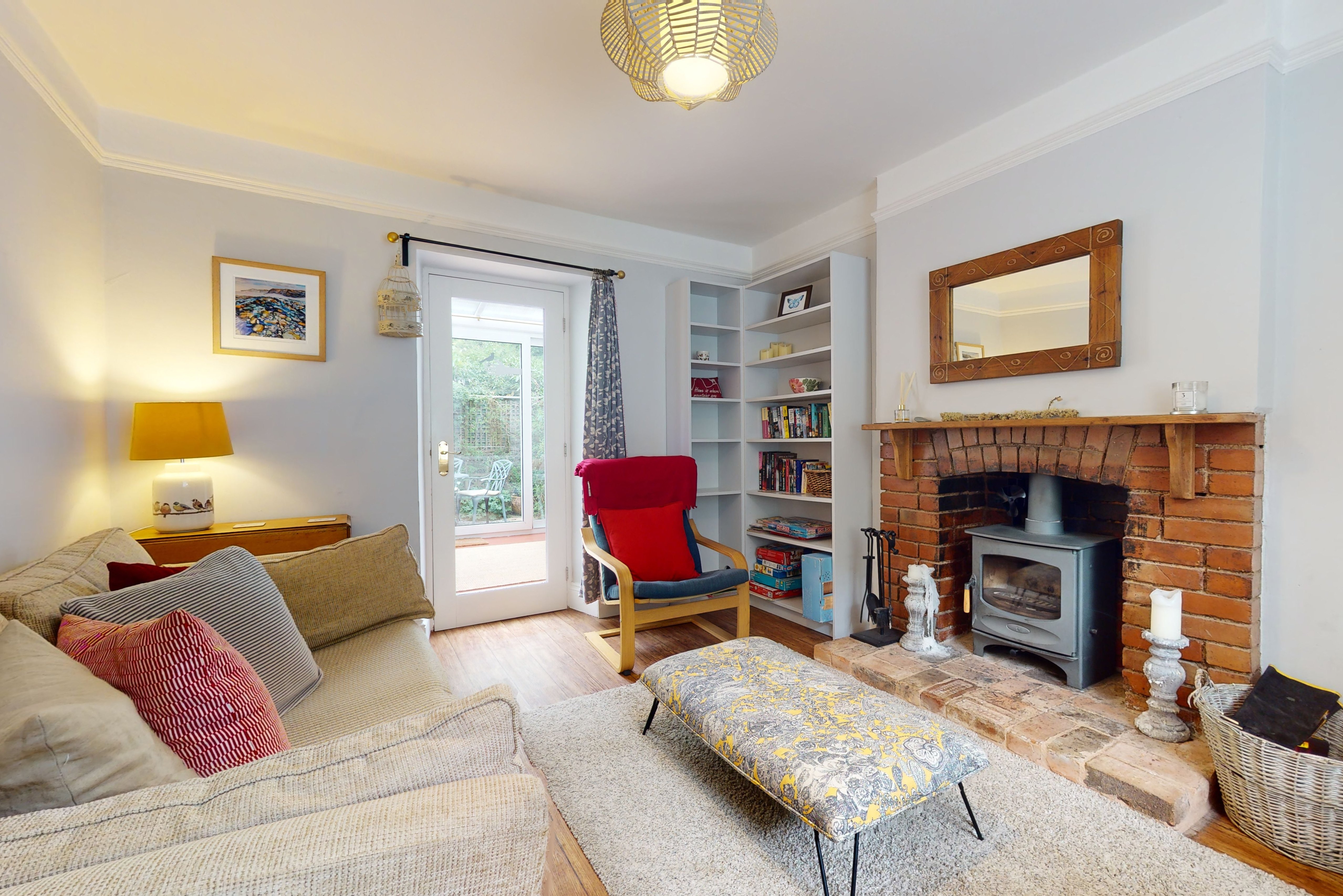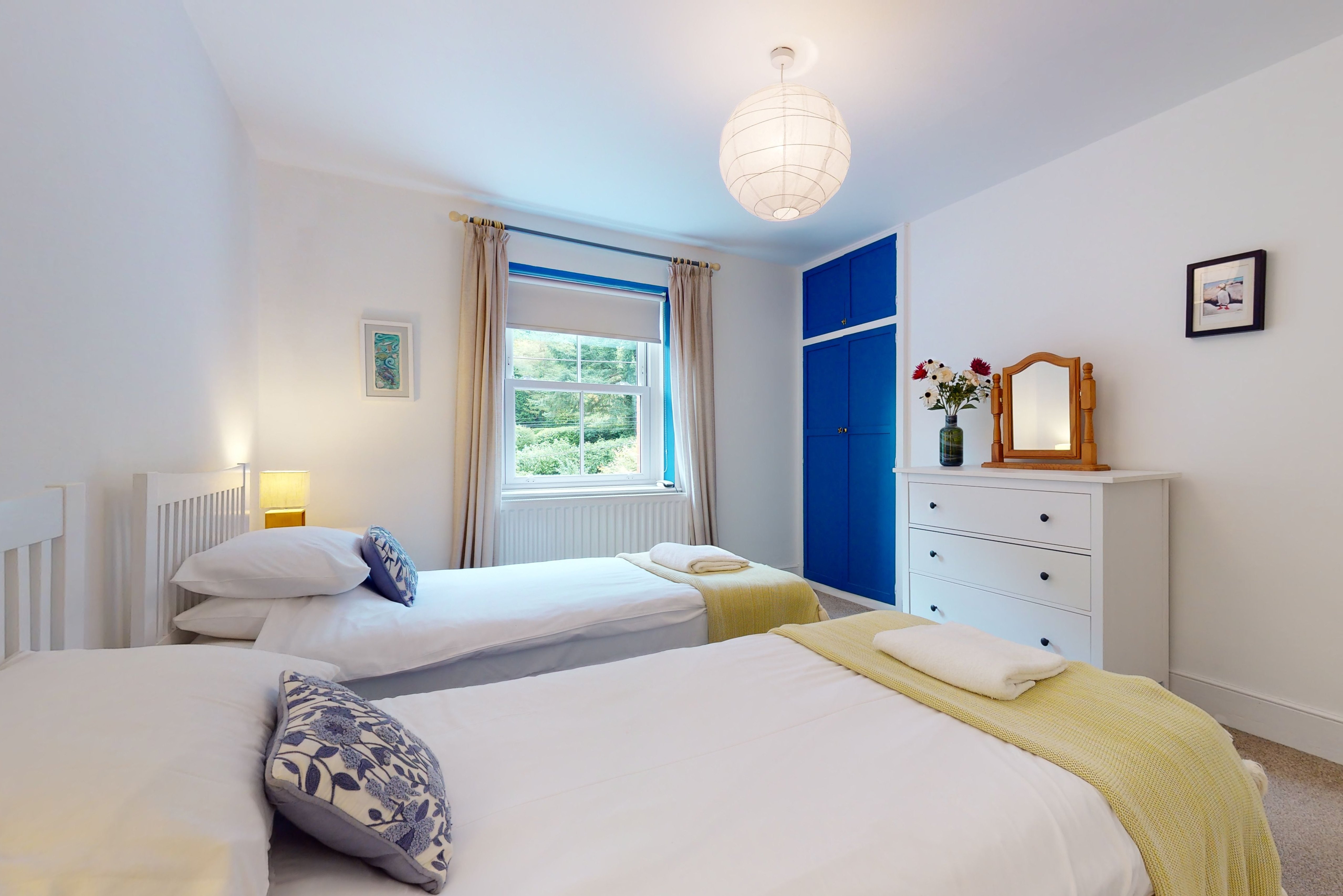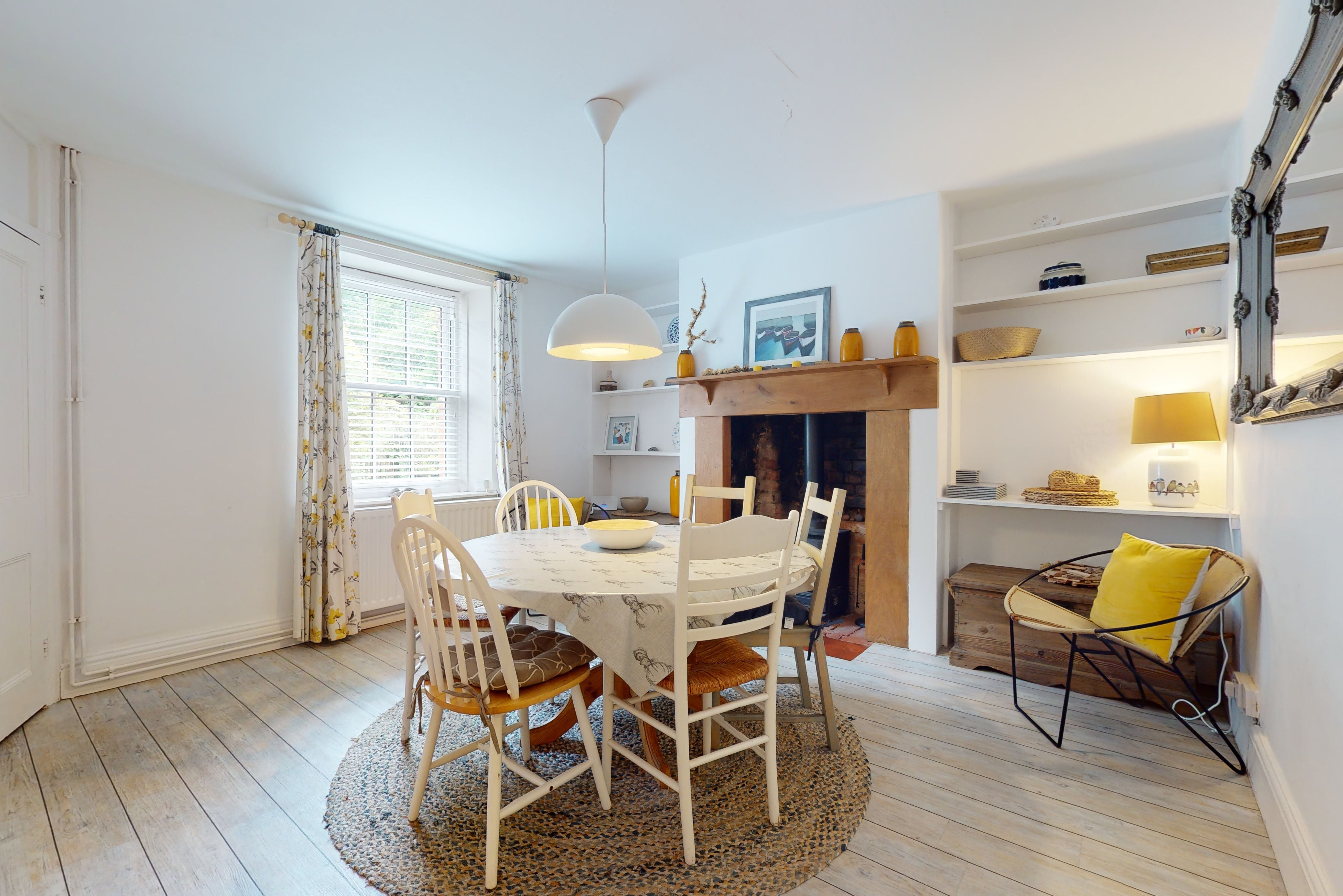 As you enter High Bank cottage, a door to the left leads you to a pretty cottage dining room with woodburner stove, large round table and chairs for 6 and book shelves each side of the fireplace. From there you enter the kitchen which is well equipped with a cupboards, sink, dishwasher and electric range cooker with six rings, a grill and two ovens. Pots, pans, utensils, crockery and cutlery, glasses and a jug are all supplied and in good condition. On from the kitchen is a large utility room with fridge/freezer, washing machine, sink and downstairs toilet. There is cupboard space with ironing board, iron and hanging space for coats etc. Plenty of room here to wash off muddy boots or dogs! Back at the front door, turning right takes you to the lounge with second woodburner stove, TV, bookcases (stocked with books and games), sofa and seating. The TV has a FireTV stick installed, meaning that you can access streaming services such as Netflix, BBC iplayer, Amazon Prime accounts easily. A door from the lounge takes you into the conservatory - a lovely space to sit during the day, a small sofa, chairs and rug and then sliding glass doors lead you to the patio at the back of the property. The patio is paved and secluded. There is a gate to passageway along the side of the property to the front and this access to the patio and from there to the utility room makes returning from a long walk easy. Upstairs, left takes you to the double room at the front of the property, with window and view to the front, plus hanging space and drawers. Next to the double (and closed off from the stairs and landing by a curtain, there is a modern bathroom with spa bath, shower over and saniflo toilet. Turning right from the top of the stairs takes you into a spacious twin room - with beds which convert to a super-king size bed if required. There is a wardrobe and chest of drawers. The cottage does not have a stair gate. The shower room has mains toilet, basin and shower cubicle, with a small window and next door is the third bed room at the back, with good quality wooden bunk beds (3ft). Both bunks have bedside lights and storage boxes. Double windows in this room look to the rear of the cottage.