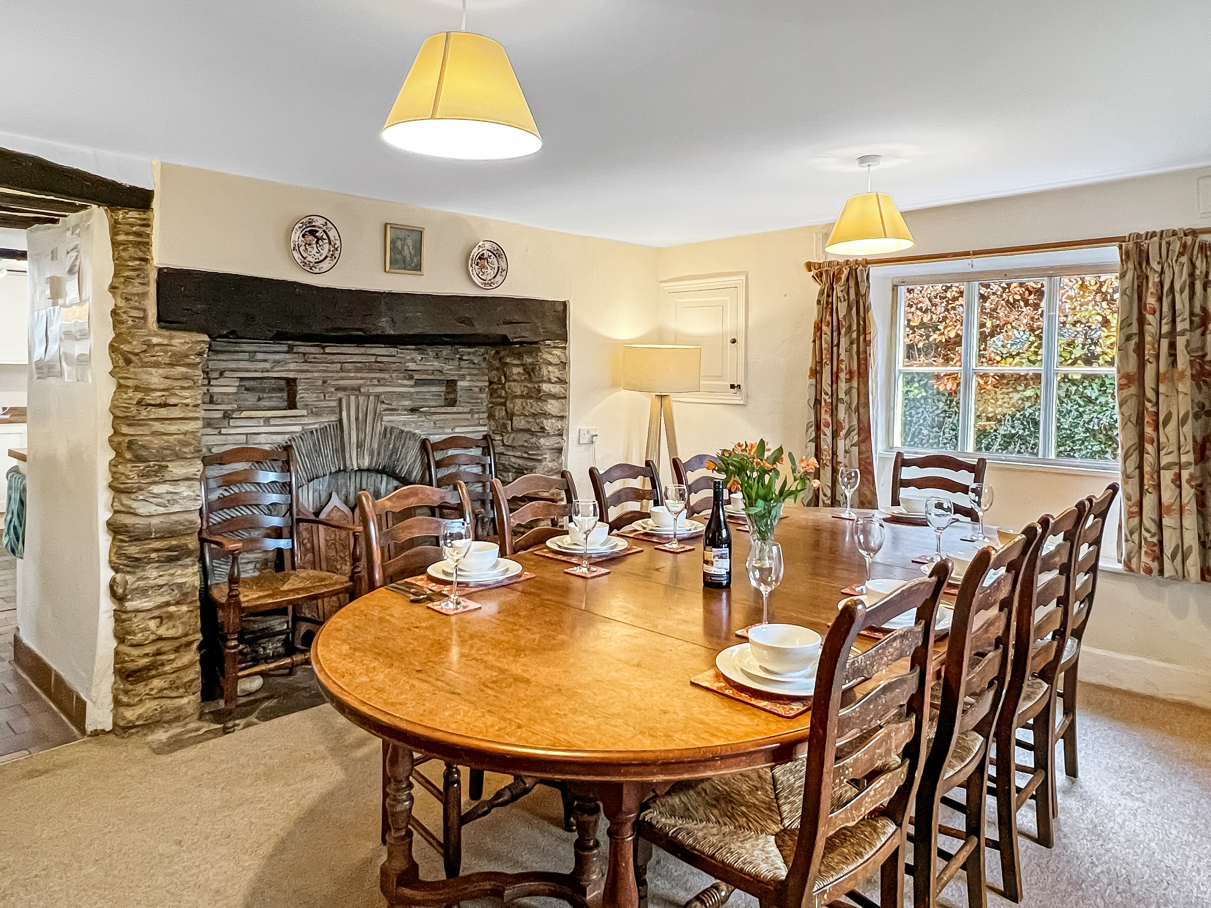 Royal Oak Farm is a distinctive pink thatched cottage set in the heart of Winsford, in Somerset, one of Exmoor’s most picturesque and celebrated villages. Full of charm and rich in history, parts of the cottage date back to the 14th century, offering guests a rare chance to experience a truly traditional Exmoor home. With generous living spaces, five bedrooms and a large enclosed garden, it’s an ideal setting for families or groups seeking a comfortable rural retreat with plenty of character. Sleeps up to 9 guests Five bedrooms Two king-size double beds, two twin bedrooms and one single Large beamed living room with wood-burner (starter logs provided) Plus a second sitting room Spacious dining room Well-equipped kitchen with tiled floor and two ovens Utility room with washing machine and tumble dryer Ground-floor shower room Two bathrooms upstairs Enclosed garden ideal for dogs Village pub next door The village shop is a short walk away Wifi, electricity and heating included Bed linen and towels provided Arrive from 4 pm Depart by 10 am Inside, the cottage blends original features with modern comforts. The beamed living room offers a warm and inviting space to relax, while the additional sitting room provides extra room for reading, games or quiet time. The large dining room easily accommodates group meals, and the well-proportioned kitchen makes preparing family feasts a simple task. There is a ground-floor shower room with a toilet. Upstairs, five bedrooms provide flexible sleeping arrangements, ensuring comfort for larger parties. There are two bathrooms upstairs, one with a bath and shower overhead, and one with a shower, both with toilets. Outside, the enclosed garden offers a safe and peaceful spot for dogs and children, and a lovely place to enjoy a morning coffee or an evening drink. With the village pub just next door and a shop within walking distance, essentials and good food are always close at hand. Winsford sits at the heart of Exmoor National Park, surrounded by stunning countryside and extensive footpaths. From the door, guests can explore beautiful walking routes across moorland, woodland and river valleys. Nearby highlights include Dulverton’s independent shops and eateries, the ancient clapper bridge at Tarr Steps, and panoramic views from Dunkery Beacon. Days out could also include Wimbleball Lake, Dunster Castle, the West Somerset Railway, and the harbours at Porlock Weir, Lynton and Lynmouth.