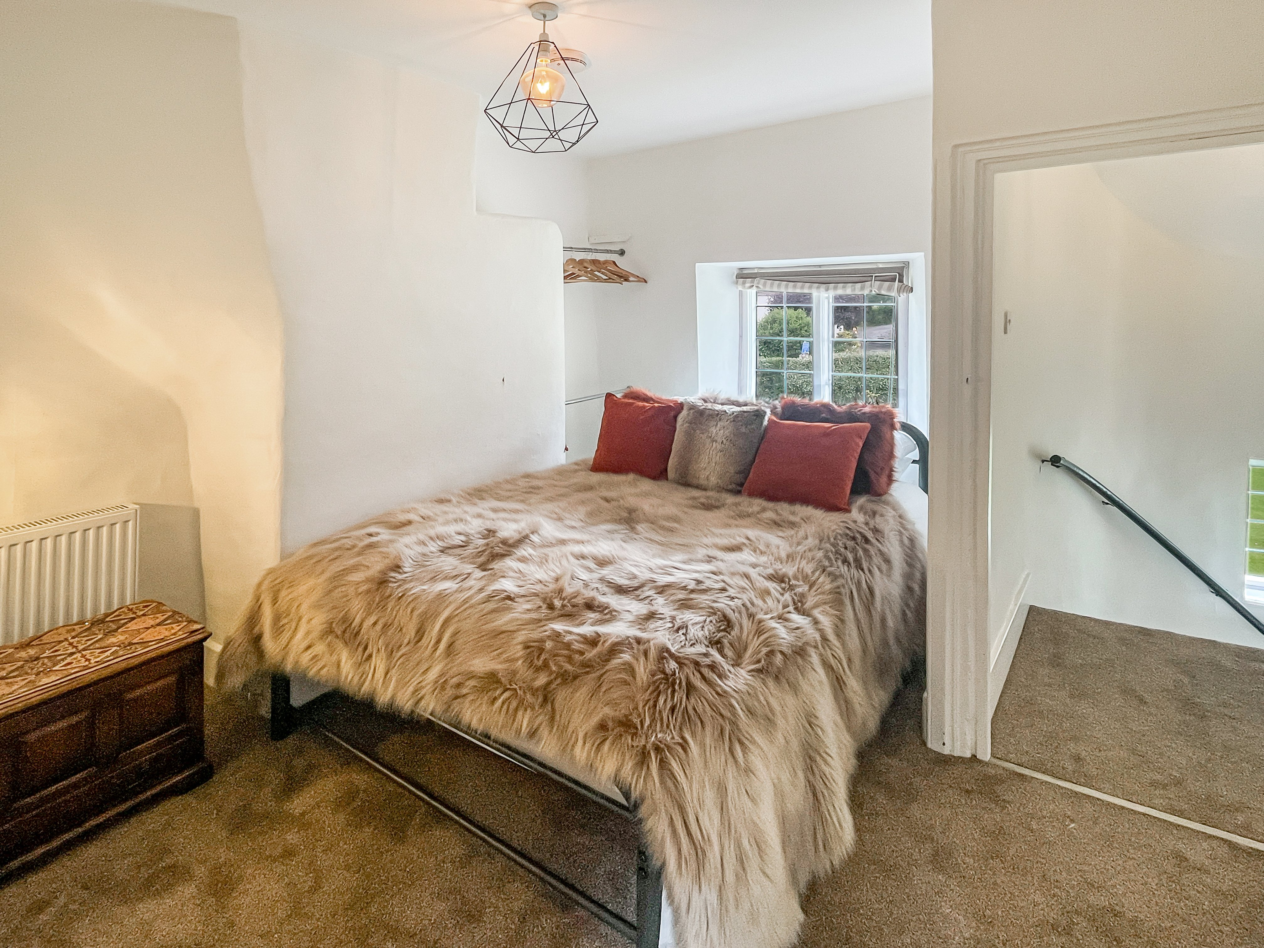 Thorn Cottage is a semi-detached property in the heart of this pretty Exmoor village, with wonderful opportunities for walking from the door in Exmoor National Park. Sleeps up to 8 guests (6 in beds + 2) Three bedrooms; one king bedroom, one double, and one room with bunk beds Sofa-bed in the living room can accommodate 2 further guests (sofa-bed linen provided for +£25) Snug with gas-fired 'wood-burner' Spacious kitchen-dining room Ground floor toilet with hand basin Family bathroom En-suite shower room Central heating throughout the property Enclosed garden with patio and outdoor seating Bed linen and towels are provided Wifi, heating and electricity is included Dogs welcome (2 max per booking) Arrive from 4 pm Depart by 10 am Newly renovated throughout, yet retaining much character and charm, Thorn Cottage has a cosy and comfortable feel. The property has an unusual layout, with two sets of stairs leading to the first floor rooms, one being a spiral staircase. On the ground floor is the living room with Smart TV and comfortable seating, the sofa can convert into a sofa-bed for up to two guests on request (supplement of £25 for use of the sofa bed). In the separate snug there is a gas-fired 'wood-burner' for those cosy evenings in. The kitchen is well-equipped with electric oven, gas hob, combi microwave/oven/grill, fridge and dishwasher. In the utility room is a washing machine and tumble dryer, and there is a ground floor toilet with hand basin. The first set of (normal) stairs leads up to bedroom 1 which has a king-size bed, and a family bathroom comprising claw-foot bath with hand-held shower attachment, toilet and hand basin. The second set of (spiral) stairs on the other side of the cottage leads up to the other two bedrooms, one has a double bed and the other bunk beds. The en-suite is accessed from either of these bedrooms (with 'Jack and Jill' doors) and comprises a large shower cubicle, toilet and hand basin. Strictly no-smoking.